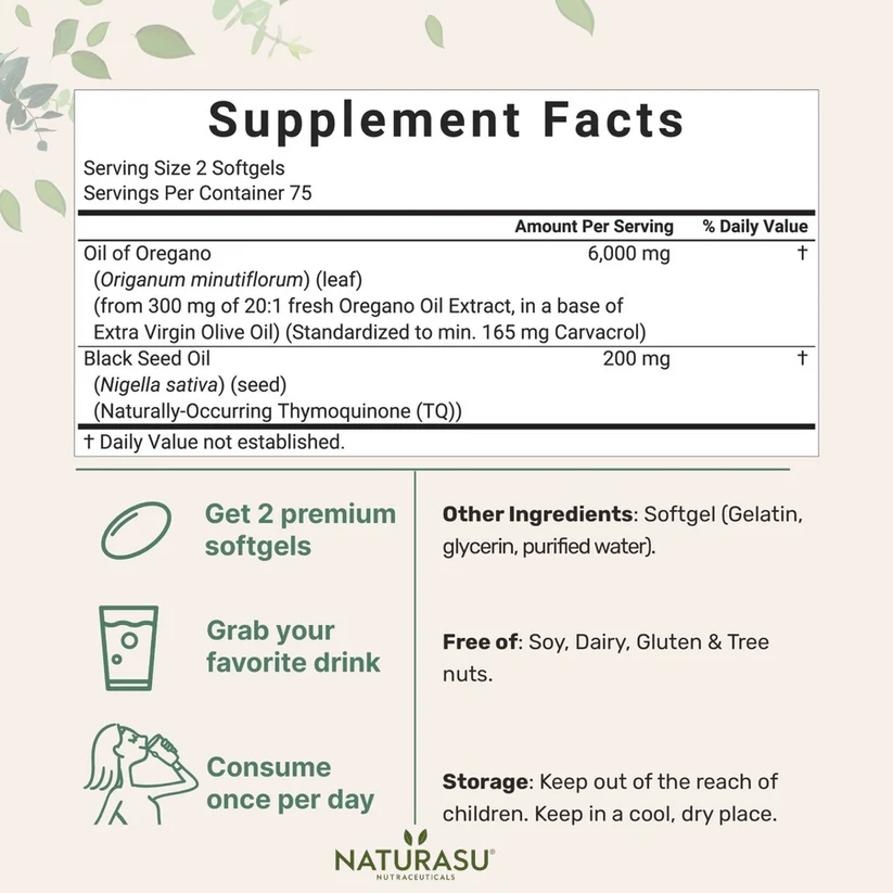 NATURASU – Oil of Oregano with Black seed Oil Soft Gels